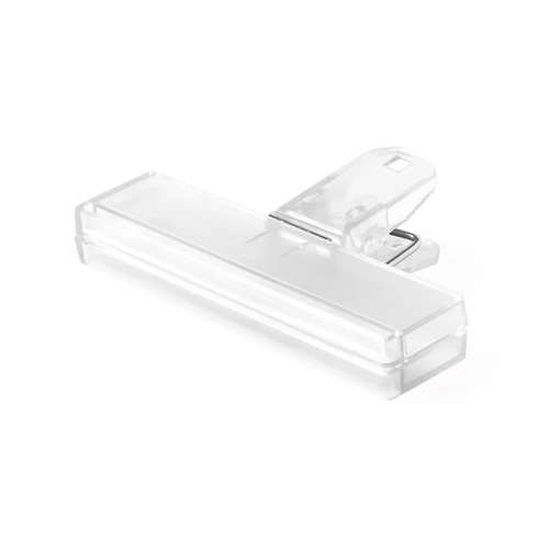 Pinza para cierre en variada gama de vivos colores translúcidos. Con troquelado para colgar.