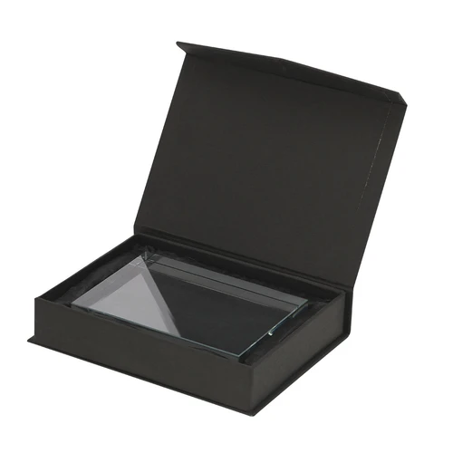 Elegante placa en cristal, con sofisticado diseño rectangular ,ideal para grabado láser. Presentada en estuche individual con cierre magnético e interior en distinguido color negro, aportando un toque distinguido.