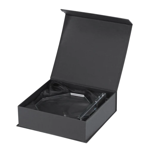 Placa trofeo de grueso cristal con elegante diseño octogonal con soporte. Ideal para regalos personalizados, reconocimientos, premios y decoración.Presentada en estuche de protección individual en elegante diseño.