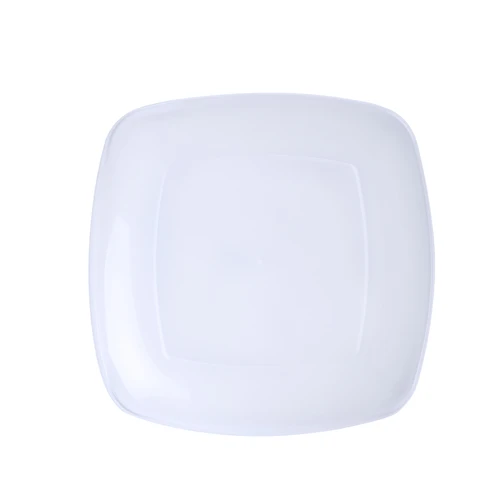Plato plano en resistente y flexible material PP. Reutilizable y en acabado translúcido cuadrado.