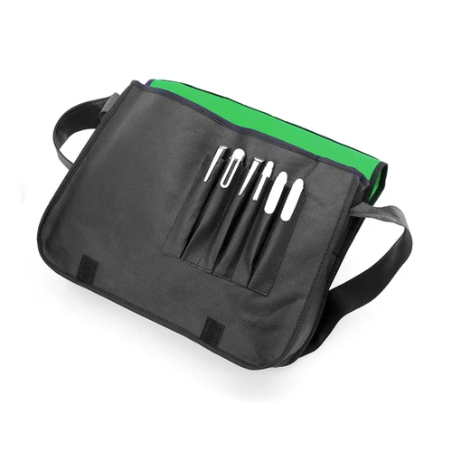 Portadocumentos con solapa de cierre de velcro en resistente non-woven con elegante ribete en color negro. Con compartimentos interiores para bolígrafos.