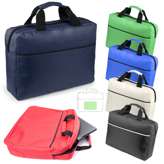 Portadocumentos de cierre de cremallera en suave acabado de poliéster 600D de vivos colores y con asas de transporte con refuerzo a juego.