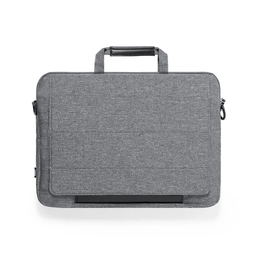 Portadocumentos de línea nature y en resistente 300D RPET efecto melange, elaborado a partir de plástico reciclado, para así fomentar la reutilización de residuos plásticos y contribuir a la sostenibilidad del planeta. Con original soporte integrado para ordenador portátil, bolsillos principal y frontal con cierre de cremallera. Interior con bolsillo acolchado para portátil de hasta 15 pulgadas y bolsillo para tablet de hasta 10 pulgadas. Cinta bandolera ajustable para hombro, con asa de transporte reforzada. Resistencia hasta 6kg, con distintivo RPET en etiqueta exterior.