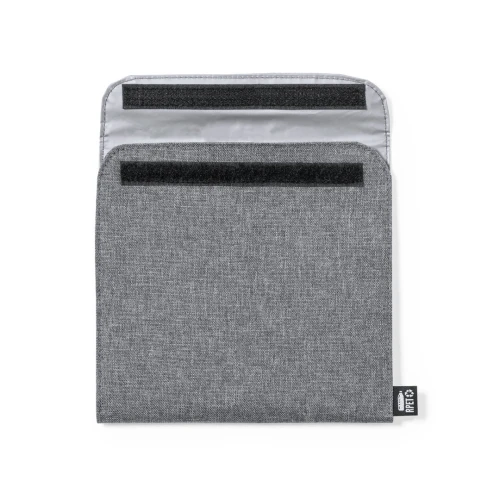 Portasnacks térmico de línea nature. Exterior fabricado en poliéster 600D RPET, elaborado a partir de plástico reciclado, para así fomentar la reutilización de residuos plásticos y ayudar a la sostenibilidad del planeta. Interior isotermo en PEVA, con cierre de velcro y etiqueta exterior con distintivo RPET.