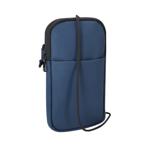 Clásico portamóvil, fabricado en suave y elegante PU. Compartimento principal con cierre de cremallera invisible y tirador metálico. Con cinta de cordón, bolsillo exterior abierto, e interior forrado.