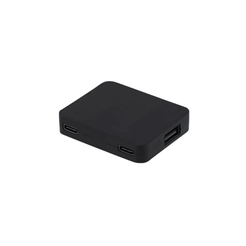 Puerto USB 2.0 fabricado en ABS reciclado (RABS). Incluye 2 puertos Tipo C y 2 puertos USB, con entrada dual USB/Tipo C. El RABS es un plástico altamente reciclable de gran resistencia y con multitud de aplicaciones que lo convierten en una solución eco-friendly. 2 Puertos Tipo C. 2 Puertos USB 2.0