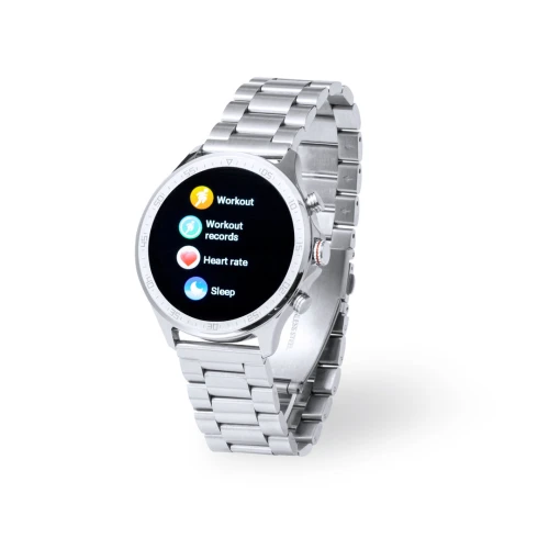 Reloj inteligente multifunción de diseño casual, con conexión Bluetooth. Caja de diseño circular y correa en acero inox a juego. Pantalla TFT táctil de 1,32 pulgadas y batería de 230 mAh, que lo convierten en el gadget perfecto para todo tipo de actividades deportivas, de ocio y para el día a día. Multitud de funciones disponibles, interfaz multilenguaje y resistente a salpicaduras de agua, con APP disponible para iOS y Android. Presentado en caja individual de diseño, con manual de instrucciones en español e inglés.