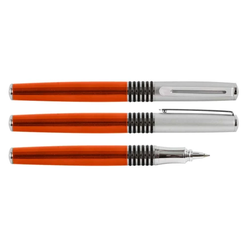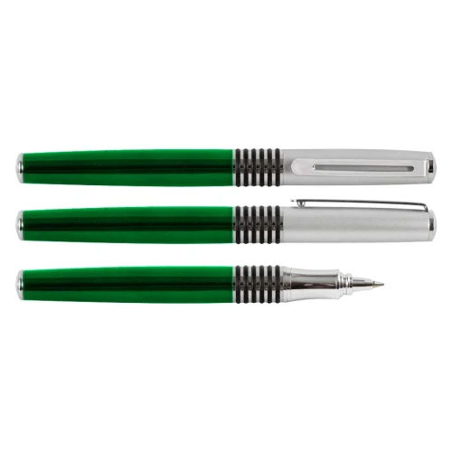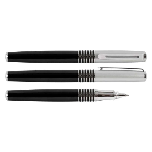 Roller Ball Metálico modelo "Manager", cuerpo de color metalizado y tapa plateada satin. Tinta negra.