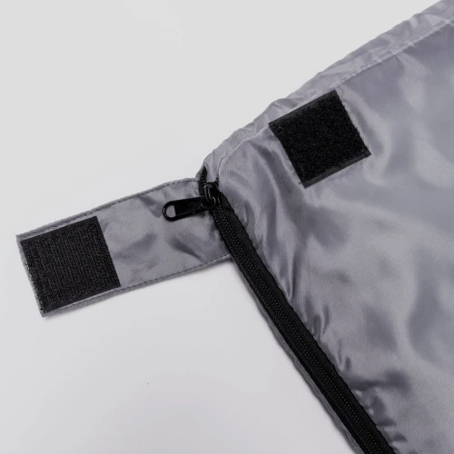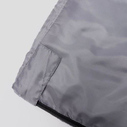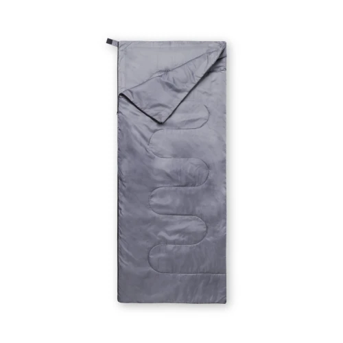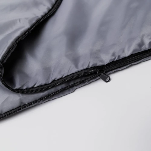 Saco de dormir fabricado en resistente poliéster RPET 190T de agradable y cálido tacto, en color gris. Con grueso acolchado interior y cierre de cremallera de apertura total con doble tirador interior y exterior. Funda a juego en RPET, con cierre de cordón, ajustador y etiqueta exterior con distintivo RPET. El material RPET se elabora a partir de plástico reciclado, para así fomentar la reutilización de residuos plásticos y ayudar a la sostenibilidad del planeta.