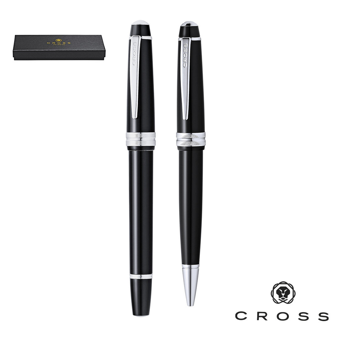 Set de bolígrafo y roller de Cross modelo Bailey Light, que combina una resina de alto brillo con acabados metálicos de cromo pulido. De cartucho jumbo y en tinta negra. Presentado en elegante estuche individual de color negro con logotipo de la marca, e interior en suave antelina. Bolígrafo y Roller. Carga Jumbo. Tinta Negra
