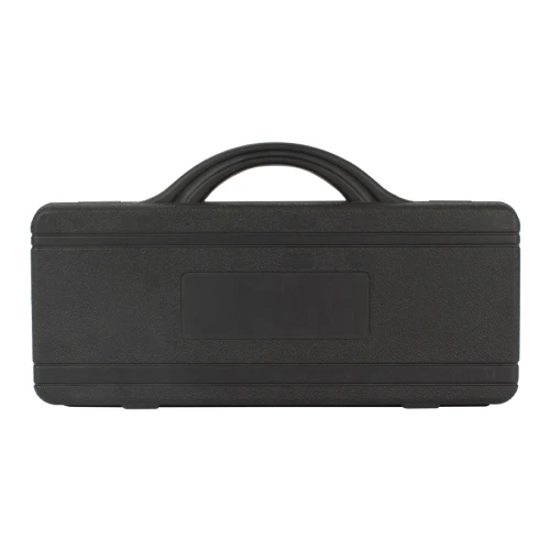 Set de 7 herramientas de BBQ en Maletín de plástico duro negro. Con ventana rectangular lisa exterior para aplicar logo.