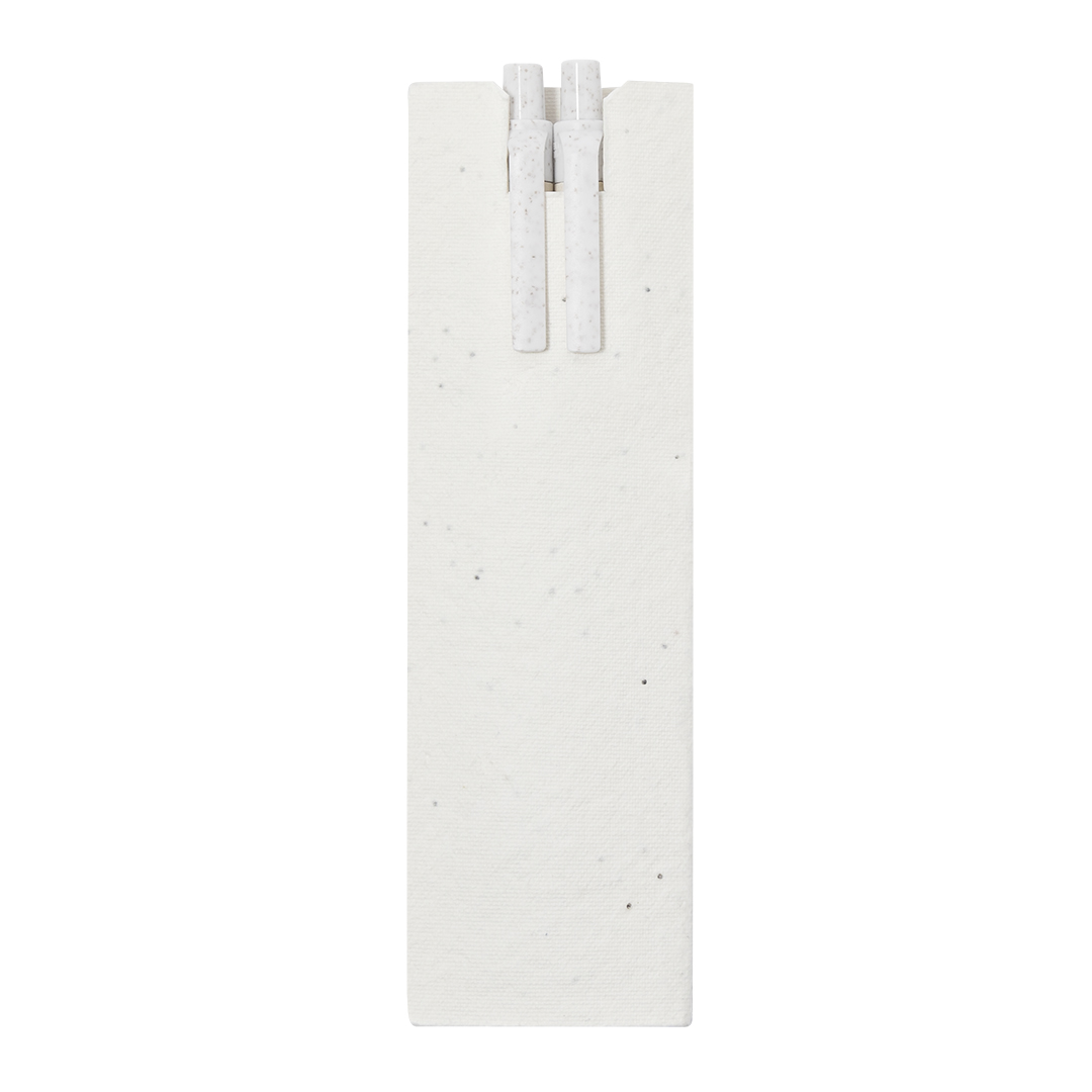 Set de bolígrafo y lápiz eterno fabricados con cartones de leche reciclados, presentados en funda de papel con semillas. Bolígrafo de tinta azul y lápiz con punta eterna, para así usar siempre el mismo lápiz y no generar residuos, ambos con mecanismo pulsador y clip a juego fabricados en Caña de Trigo, con distintivo grabado. Con distintivo de cartón de leche reciclado en el cuerpo. La funda incluye semillas de petunia, convirtiéndolo en papel plantable al final de su vida útil. Incluye instrucciones de plantado en la cubierta trasera.Los Cartones de Ceche se componen en su mayor parte de cartón y aluminio. Durante su proceso de reciclado, se separan los distintos materiales del envase para su reutilización y nuevo uso, contribuyendo así a recorrer el camino infinito de la economía circular. Este material se caracteriza por su alto grado de reciclabilidad, así como por su ligereza y resistencia.La Caña de Trigo fomenta la utilización de materias primas naturales, reduciendo así las emisiones contaminantes. Bolígrafo y Lápiz Eterno. Funda Papel Semilla. Semillas de Petunia. Flores Colores Surtidos