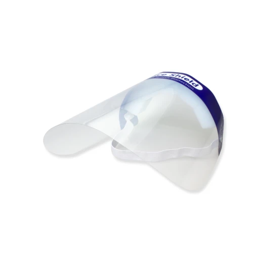 Set (Bolsa) de 10 Face Shield - Escudo Protector Facial de mica plástica transparente para la protección de transmisión de partículas por vía aérea. Incluye esponja para la frente y banda elástica. Fácil y cómoda de usar.