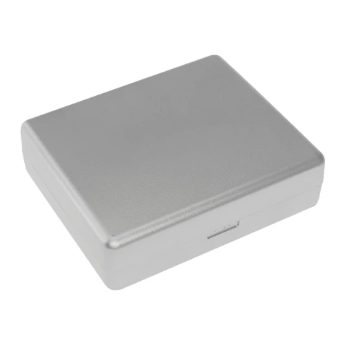 Set de 21 prácticas herramientas en caja rígida plástica plateada. Amplia área para impresión.