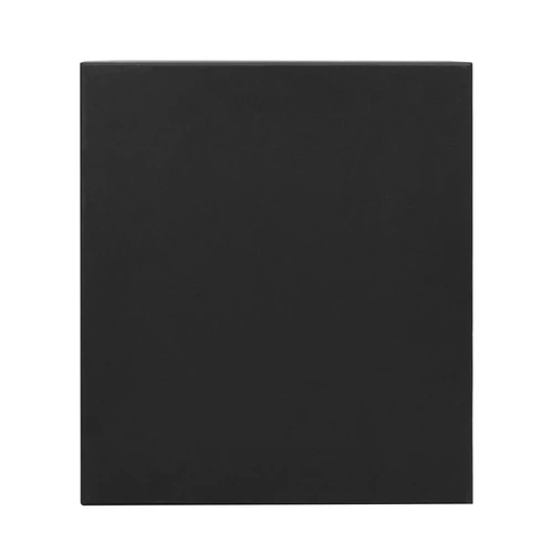 - 1 libreta color negro de 14 x 21 x 1,5 cm. Con placa metálica color gun de 5 x 2 cm. Tapa de cartón 300g recubierta en RPET 310. Interior de 80 hojas rayadas de 70g. Encuadernación cosida y cierre con banda elástica color negro.