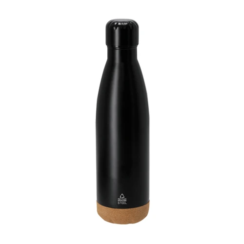 Set de bloc de notas, bolígrafo y bidón térmico . Incluye:- Bloc de notas de tapas rígidas, de corcho y poliéster 300D RPET, marcapáginas de tela y elástico de sujeción a juego. 80 hojas interiores a rayas. - Bolígrafo con cuerpo recubierto en corcho y aluminio. Elegante clip y accesorios a juego, de mecanismo pulsador y en tinta azul. - Bidón térmico de Acero Inox Reciclado con capacidad de 500ml, con diseño de base en corcho. Tapón a rosca. Con distintivo logotipo de Acero Inox Reciclado.
