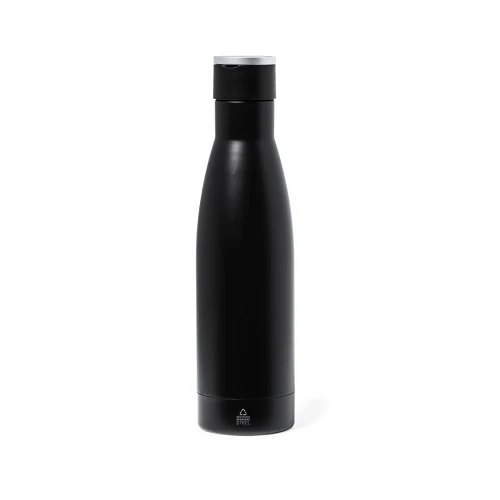 Elegante set premium que incluye:Termo de doble capa en acero inoxidable reciclado de acabado negro mate y de 500 ml de capacidad, con asa rígida de metal color plata mate. Con distintivo acero inoxidableBloc de notas en RPET en elegante color negro, con detalle metálico especial para marcaje en láser. Incluye cierre elástico y marcapáginas de tela. Interior con 80 hojas de disposición a una raya. Con distintivo RPETParaguas plegable de color negro con 98cm de diámetro. En material pongee 190T RPET. De apertura manual, con sistema anti viento y varillas fibra de vidrio. Con funda de transporte y cintas a juego. Con etiqueta distintiva RPET.Bolígrafo en RPET de acabado negro mate, de mecanismo giratorio y tinta azul. El material RPET se elabora a partir de plástico reciclado, para así fomentar la reutilización de residuos plásticos y ayudar a la sostenibilidad del planeta. Set presentado en estuche individual de acabado mate, con troquelado interior para cada uno de los elementos del set.