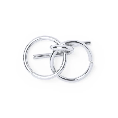 Set de 4 juegos de habilidad de acero inox para los jugadores más ingeniosos. Presentado en bolsita de color crudo con cordón de cierre auto ajustable.