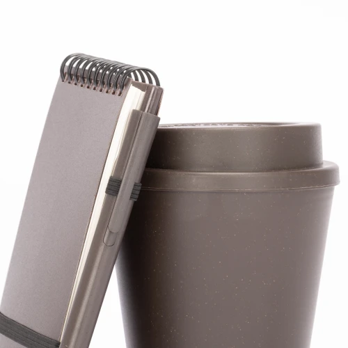 KAUAI es un set que transforma residuos de café en objetos útiles y con carácter. Incluye una libreta A6 de 60 hojas, un bolígrafo y un mug de 360 ml, todos fabricados con fibra de café reutilizada, cuidadosamente presentados en una caja de cartón kraft. Este set no solo es funcional y personalizable, sino que también comunica un mensaje claro de innovación circular. KAUAI es ideal para marcas que desean regalar diseño con propósito, fusionando creatividad, practicidad y un compromiso real con el medioambiente.