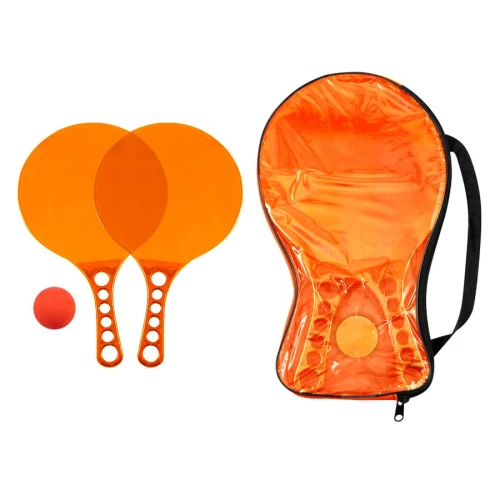 Set de Paletas de Playa de Acrílico de color Traslúcido, incluye estuche de PVC y pelotita de goma.
