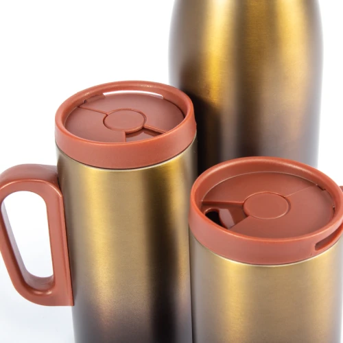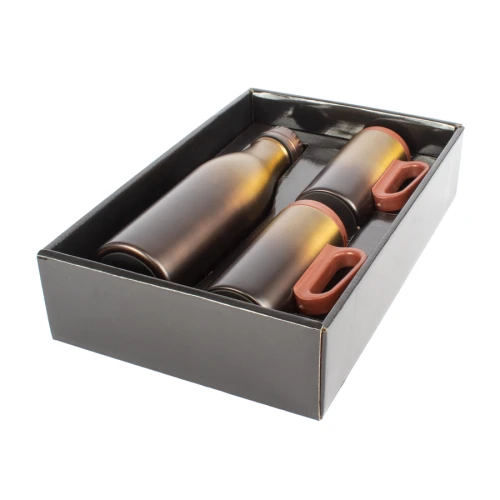 • Tamaño: Caja: 21.5 x 33.5 x 8 cm. / Termo: D7.7 x 26 cm. / Tazón: D5.9 x 12 cm.• Colores: Café en degradé (11)