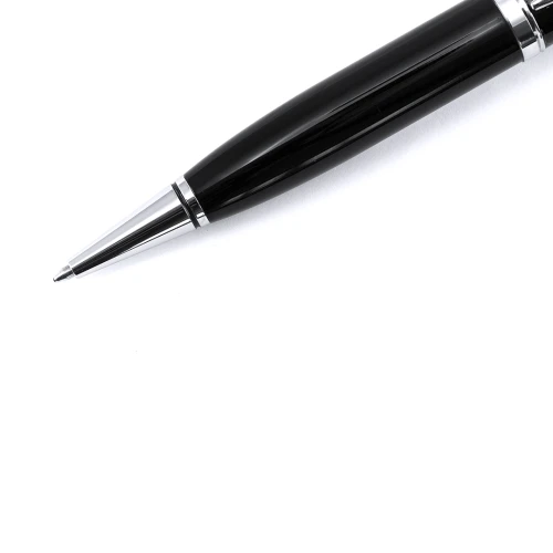 Bolígrafo tecnológico multifunción en sobrios colores, con memoria USB de 16GB de capacidad integrada en la capucha y puntero de suave goma a juego. Cuerpo en acabado métálico brillante, de apertura giratoria y con tinta azul. Presentado en elegante caja de cartón de color blanco con cierre magnético y suave espuma troquelada.