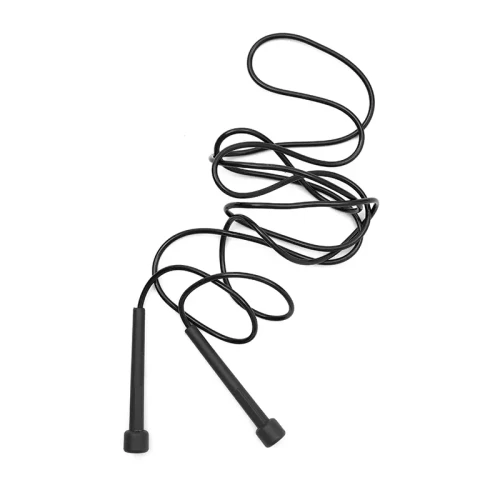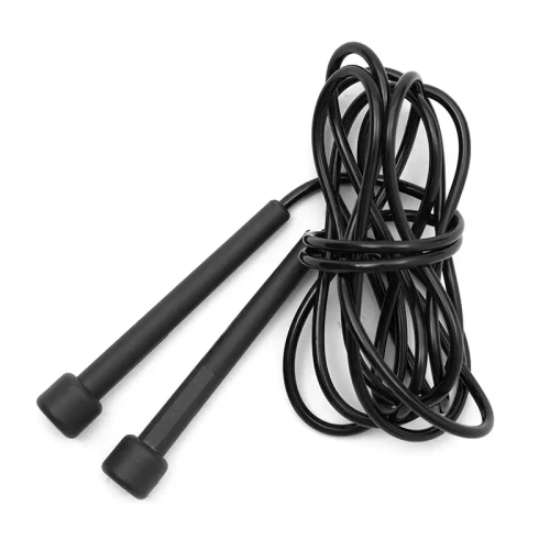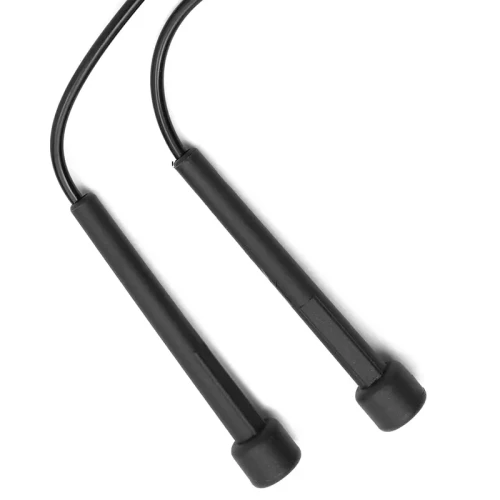Soga de saltar fabricada en PVC (cuerda) y PP (agarre). Su largo de 2,6 metros se adapta a diferentes estaturas y niveles de entrenamiento.