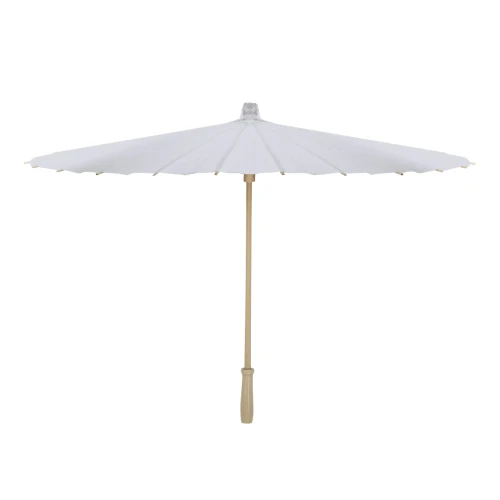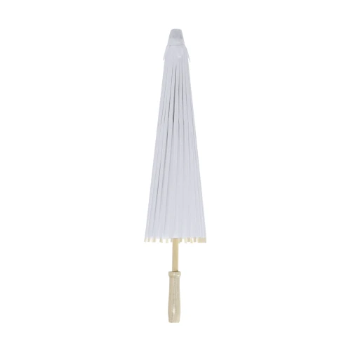 Original sombrilla de madera y tela en papel. Con mango en madera natural en acabado brillante. Sistema de apertura y cierre manual, con diámetro de 58 cm las varillas están fabricadas en madera. Ideal para eventos al aire libre.Elaborado con elementos vegetales para así fomentar la utilización de materias primas naturales y reducir las emisiones contaminantes.