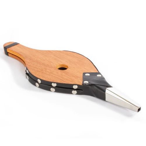 Soplador pequeño de aire tipo Acordeón, para chimemeas y parrillas. Superficie MDF, reforzado con cuero y tachas. Toma de aire posterior. Amplia superficie para logo.