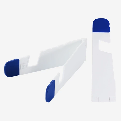 Soporte plástico abatible para iPad y Celular, con goma antideslizante en ambos terminales.