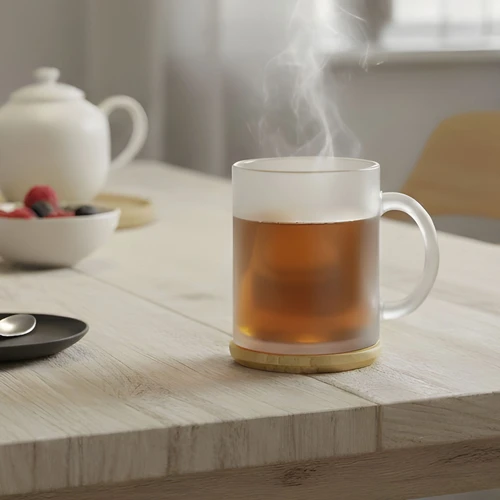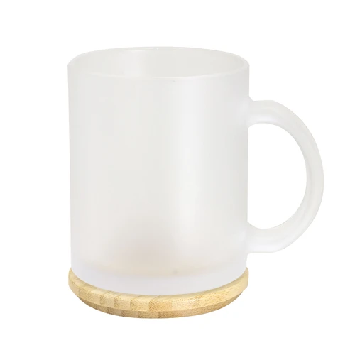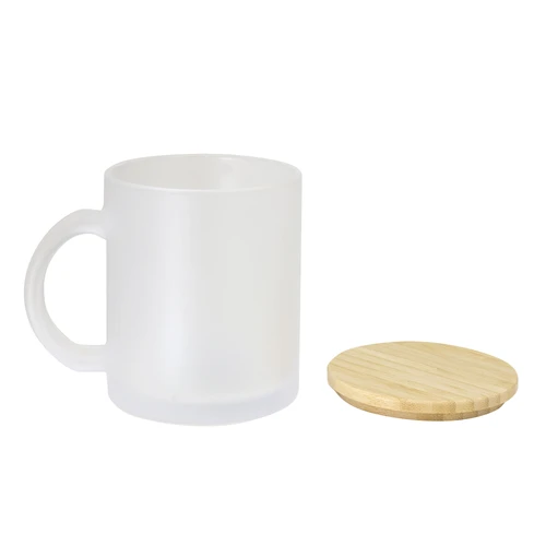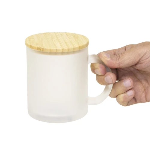 Diseño clásico y sutil.Taza de vidrio con acabado frost. Tapa de Bambú barnizado.Medidas: Ø 8 cm x 9,7 cm.