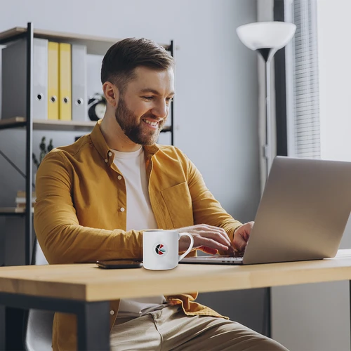 Taza de cerámica de 350ml de capacidad. Parte exterior e interior en acabado mate. Presenta un círculo en relieve en el centro de la taza, perfecto para personalizar.