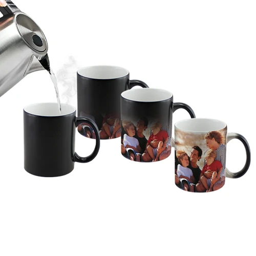 Tazón cerámico mágico color Mate (opaco) para Sublimación. Contiene polímero termo-reactor en la pared exterior del tazón. A primera vista parece un tazón negro estándar, pero en contacto con líquido caliente, la imagen sublimada comienza a aparecer nítidamente en el tazón. Una vez que el líquido se enfría, la imagen se desvanece y vuelve a aparecer el negro mate. Incluye caja blanca de Cartón.