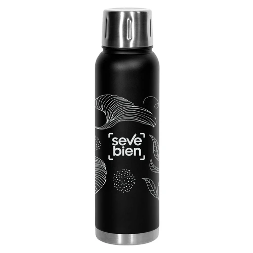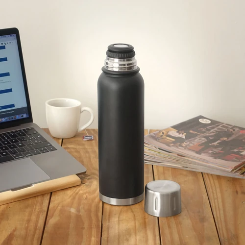 Ø 8,4 x 30 cm. Capacidad 1000 ml. Acero inoxidable. Termo Premium Doble pared sellada al vacío con recubrimiento de cobre que permite mayor aislamiento térmico y resistencia a la corrosión. Interior en acero 304 y exterior en acero 201. Pintura Powder Coat (pintura mas duradera y resistente a la corrosión y el paso del tiempo). Tapa de acero a rosca. Tapón con apertura y cierre a presión. Mantiene por más de 12 hs la temperatura de las bebidas calientes y hasta 24 hs la de las bebidas frías. Presentación en caja de regalo.