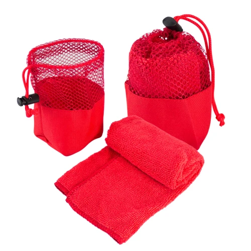 • Tamaño: Toalla 33 x 30 cm aprox / Bolsito Ø 7 X 11 cm aprox.• Colores:Blanco (01), Azul (02), Rojo (03), Naranjo (04), Amarillo (05), Gris (07), Negro (08), Verde (15), Morado (25).