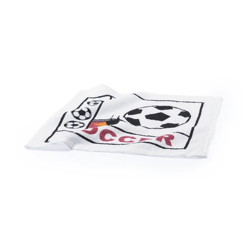 Original toalla en material 100% algodón de 245 gramos. Plegada dentro de bola con diseños fútbol, baloncesto, tenis y golf. Bola retractilada en bolsa y presentada en funda de poliéster con mosquetón metálico de transporte