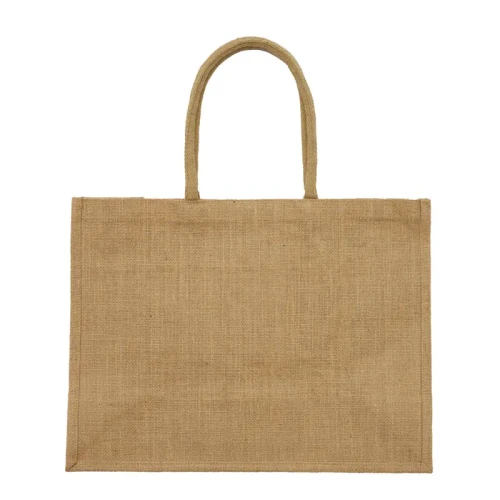 Tote bag fabricada en yute laminado. Ideal para quienes buscan una bolsa resistente y espaciosa, perfecta para llevar compras, libros o cualquier objeto personal de forma cómoda y ecológica. Medidas: 35 x 46 x 19 cm. ReUseMe