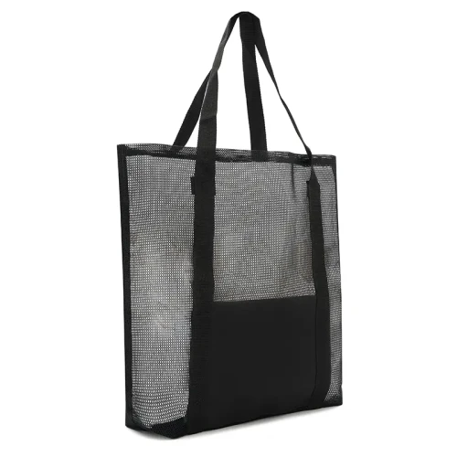 Bolso tote versátil fabricado con malla RPET y poliéster 600D, materiales reciclados y duraderos. Cuenta con un amplio compartimento principal, asas reforzadas para mayor comodidad y resistencia, estructura ligera que facilita el transporte, y diseño de red que combina estilo moderno con practicidad. Es ideal para llevar compras, usar en la playa, transportar artículos del gimnasio o como bolso diario, ofreciendo una opción ecológica, práctica y elegante.