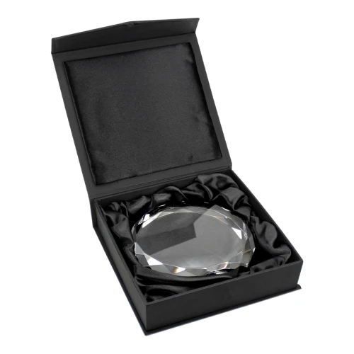 Trofeo de Cristal modelo "Diamond". Presentación en caja de cartón forrado negro.