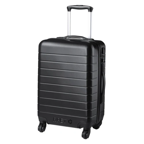 Trolley de cabina de línea nature resistente a los golpes, fabricado en material RPET elaborado a partir de plástico reciclado, para así fomentar la reutilización de residuos plásticos y contribuir a la sostenibilidad del planeta. Asa de transporte telescópica, con 4 ruedas giratorias y cierre de seguridad TSA. Forro interior en RPET, con cintas elásticas de sujeción incluidas. Distintivo RPET grabado en frontal.