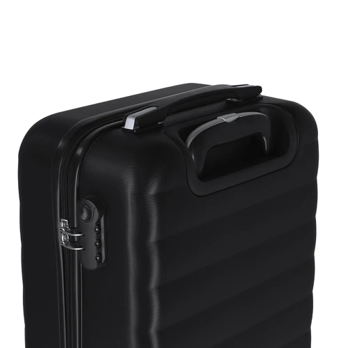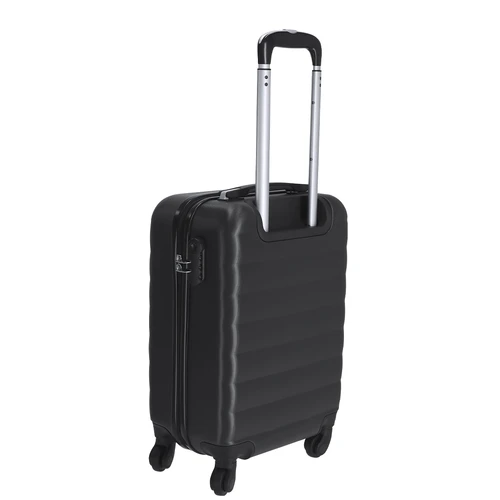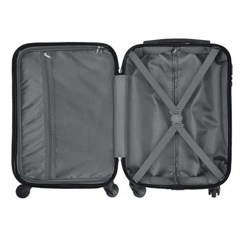 Trolley de 4 ruedas telescópicas en material ABS rígido de alta resistencia. Compartimento principal con cierre de cremallera de doble tirador y lateral con cierre de seguridad de combinación numérica. Con asa de mano de cómodo y suave tacto y chapa exterior metálica. Interior con compartimento base con cremallera vertical y cintas elásticas cruzadas. Compartimento superior con cremalleras dobles, bolsillo horizontal y bolsillo frontal en malla gris con cremallera.