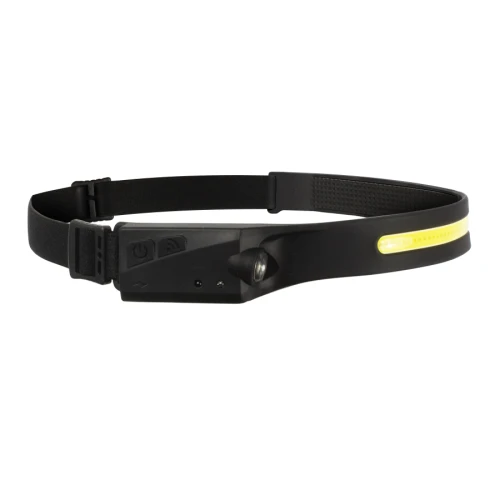 La mejor linterna LED para cabeza del mercado. Contenida en banda elástica de silicona negra con strap tamaño ajustable. Recargable con terminal USB, no usa pilas convencionales. Contiene 2 linternas LED: una banda frontal COB LED enfoque abierto + 1 luz XPE LED lateral enfoque concentrado. Ambas luces LED de alta intensidad (350 LUMENS), Cada luz LED con 2 funciones de intensidad + una quinta función estroboscópica (titila). Tiempo de Carga: 2 horas, tiempo de uso: hasta 8 horas. Contiene cable cargador USB / TYPE-C. Contiene sensor de encendido/apagado y displasy de poder. Contiene batería interna (built-in) de 1200mAh. Genial para uso en labores hand-free (manos libres): ej. bodegas, labores de construcción, manualidades y para hacer deportes nocturnos al aire libre (running, bicileta, etc)
