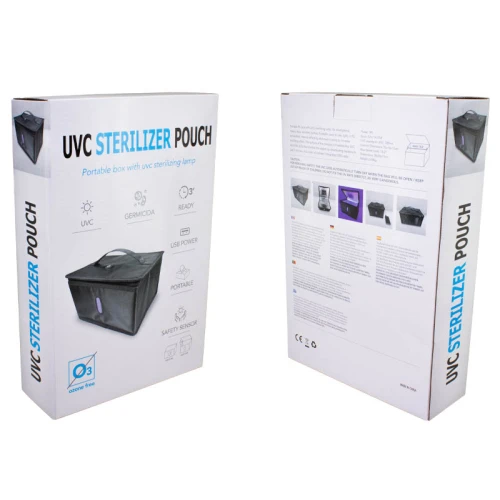 Ahora podrás transportar tus objetos personales en un ambiente esterilizado, eliminando bacterias y virus en sólo 3 minutos!! Este Necessaire plegable con interior aislante plateado, activa rayos ultravioleta UVC, que, en conjunto con sus rayos UVA, eliminan el 99% de las bacterias y virus que habitan en tus objetos, destruyendo su ADN y eliminando su capacidad de reproducción. Contiene G-Sensor, para evitar contacto de luz UVC con los ojos. Contiene Manual de Instrucciones de uso en español.+