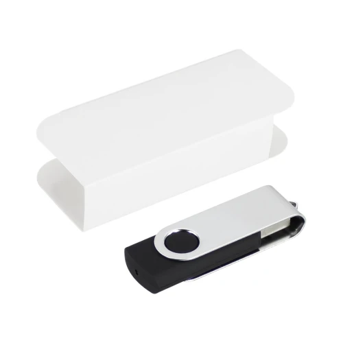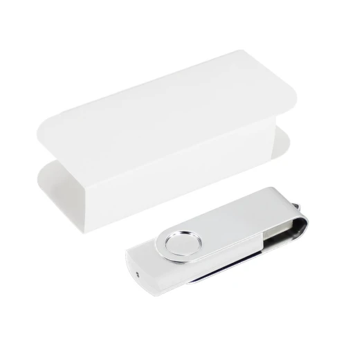 USB Pendrive 2.0 con 32GB de memoria, con carcasa metálica de giro. Presentación en caja de PVC translúcido.