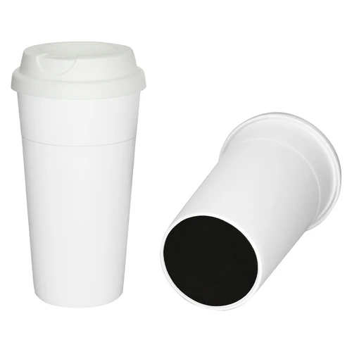 Vaso grande de 480ml. modelo "Cloud" de plástico blanco, con tapa rosca de silicona blanca. Presentación en caja de cartón blanco.
