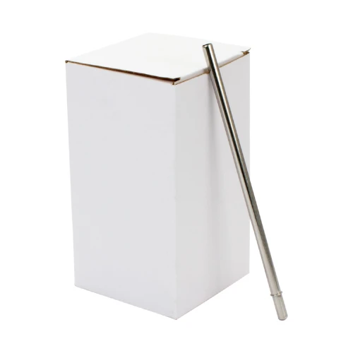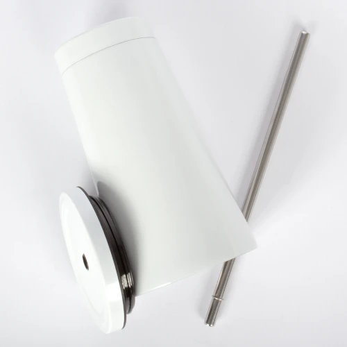 Vaso blanco de Acero Inoxidable, doble pared aislante, con tapa rosca y bombilla de Acero Inoxidable, para Sublimación. Calidad superior "ORCA". Capacidad 550cc (15oz). Presentación en bolsa blanca + estuche de cartón blanco.