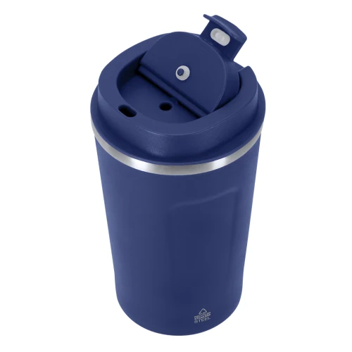 Vaso térmico con capacidad de 400 ml, fabricado en Acero Inoxidable Reciclado. Incorpora pantalla táctil en la tapa que muestra la temperatura interior con solo un toque. Cuenta con tapadera de seguridad para un cierre hermético. Libre de BPA. Incluye distintivo Acero Inox Recliclado. Alimentación a batería. No apto para lavavajillas.