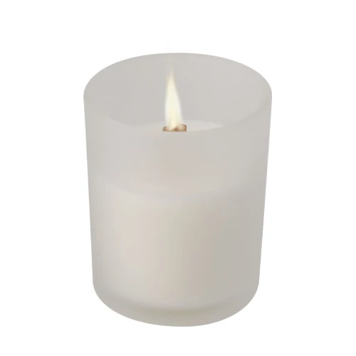 Original vela con aroma vainilla. Fabricada en cristal, con mecha de madera.