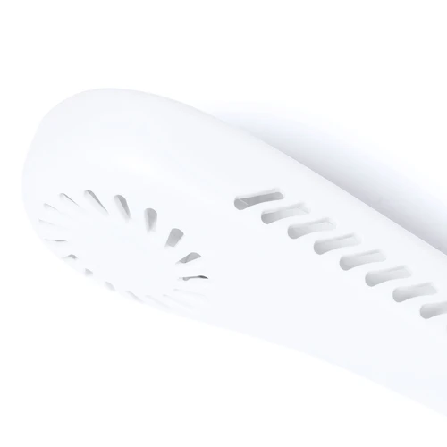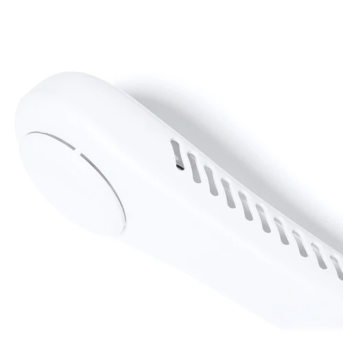Práctico ventilador portátil fabricado en resistente ABS. Este elegante ventilador tiene un diseño en forma de collar para colocarlo alrededor del cuello, brindando una sensación refrescante. Ofrece tres posiciones de velocidad diferentes y es recargable mediante su batería de 800 mAh, cable Micro USB incluido. Presentado en caja de diseño kraft.